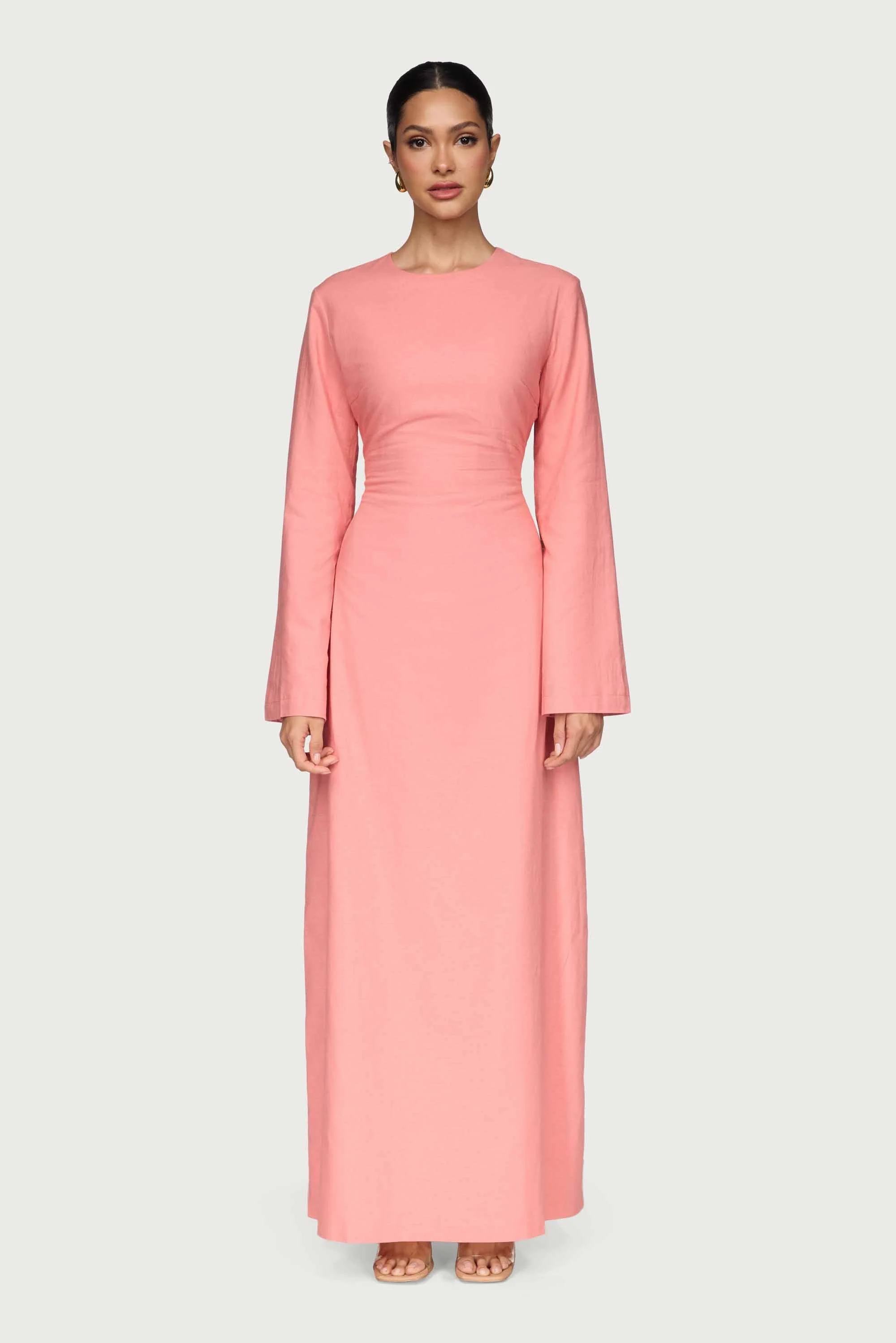 Cotton Linen Lace Up Back Maxi Dress - Summer Coral