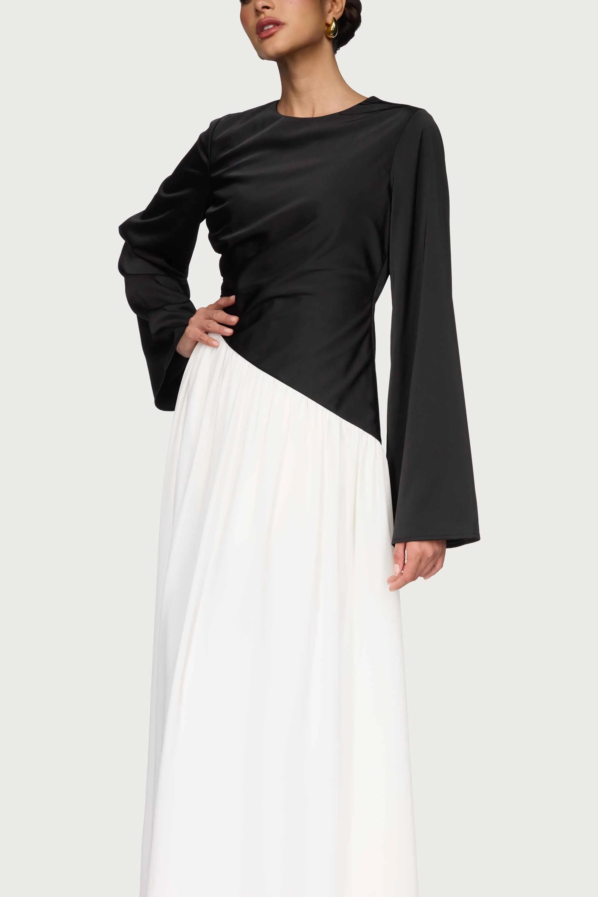 Layal Rouched Contrast Asymmetrical Maxi Dress - Black