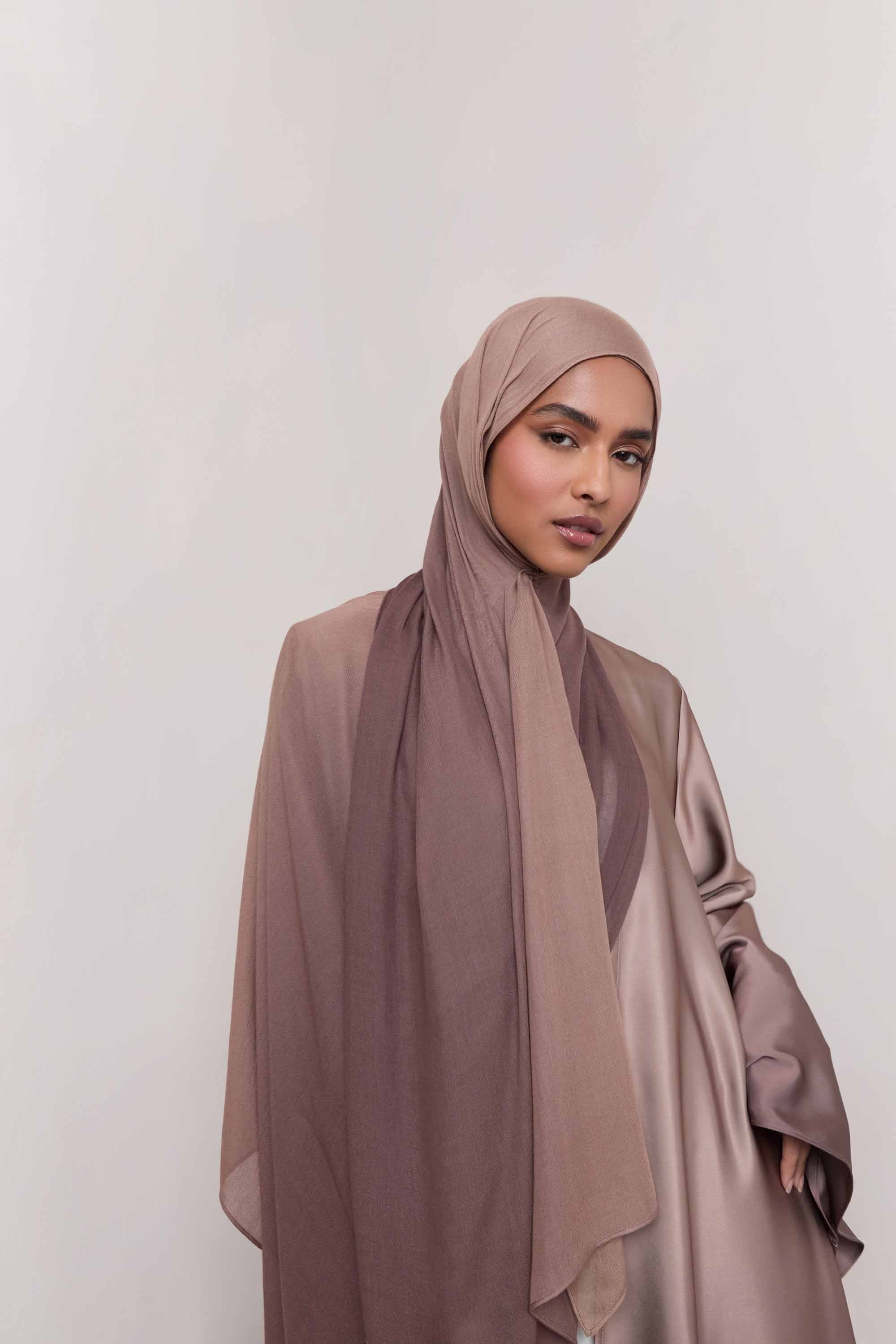 Discover our newest Ombre Modal Hijabs. Made from luxurious modal fabric, this hijab is lightweight and breathable, perfect for all-day wear. Its ombre gradient is perfect for elevating your look, no matter the occasion. Its versatility makes it a must-have for any wardrobe.