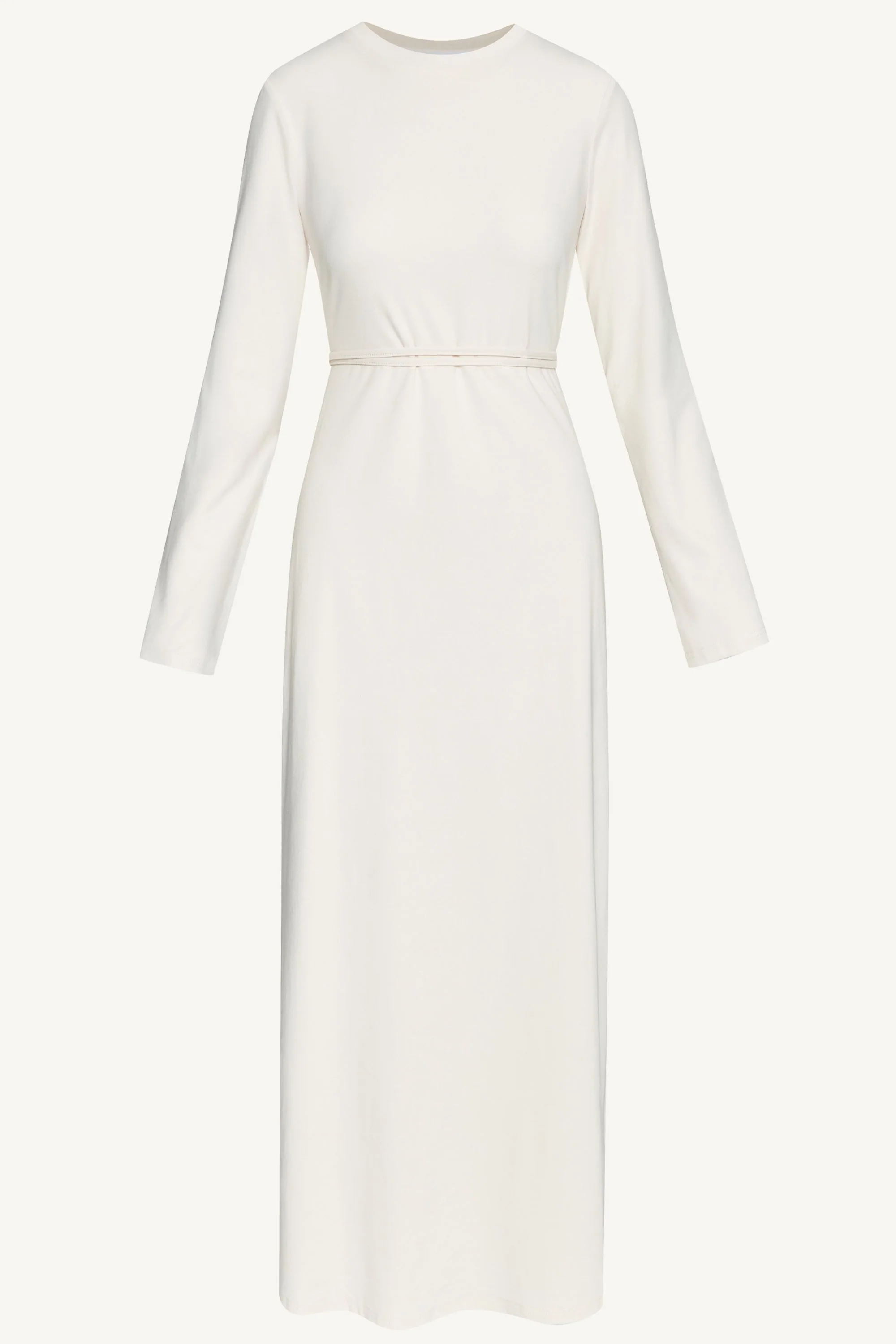 Indulge in the elevated simplicity of our Ribbed Cotton Maxi Dress in Off White. Made from ribbed cotton fabric, it's a versatile piece that effortlessly ties at the waist for comfort and style. An everyday staple that exudes sophistication and luxury. Elevate your wardrobe with this maxi dress.
