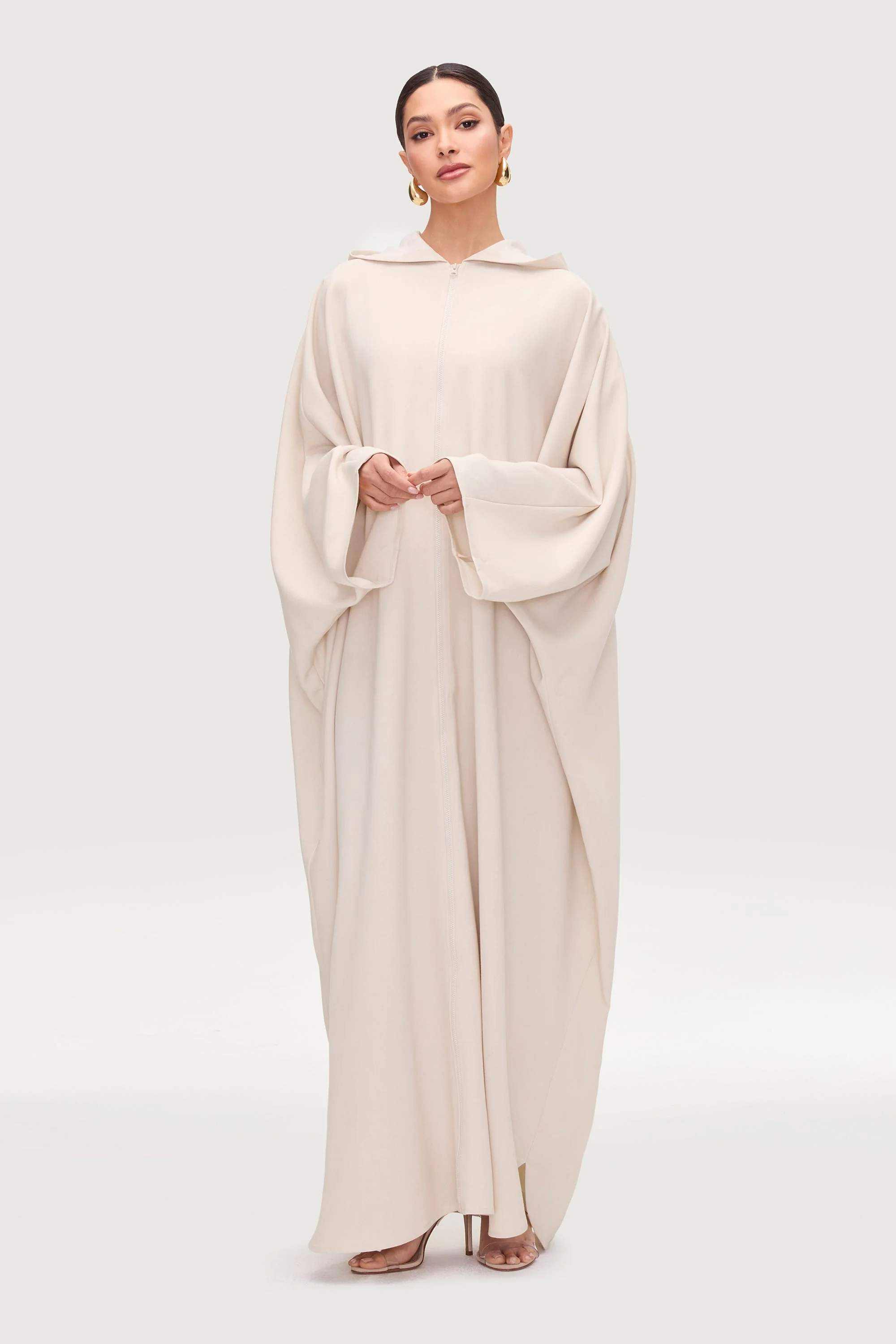 Saria Hooded Zip Front Kaftan Dress - Cloud